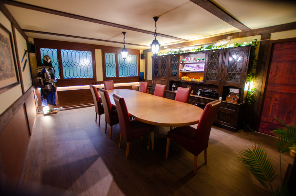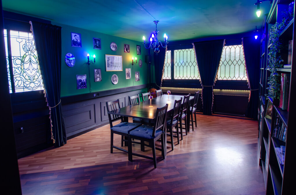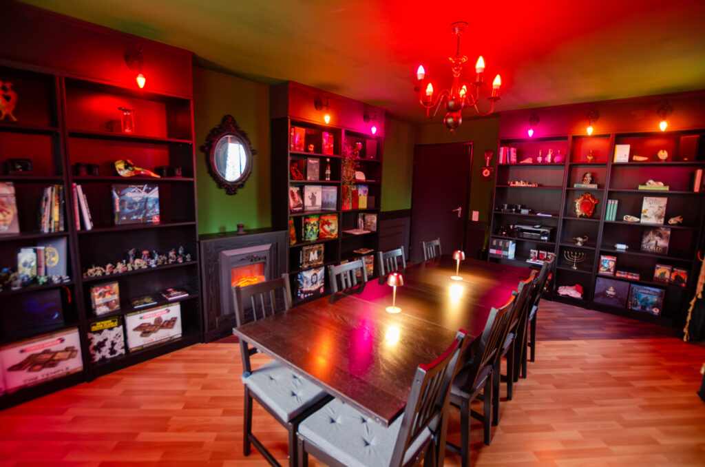 Je nach gewähltem Erlebnis spielt Ihr entweder in der Fantasy-Taverne, der Dark-Academia-Bibliothek oder der Sci-Fi-Brücke. Egal wo – Getränke wie Softdrinks, Kaffee und Tee gibt’s bei uns zu kaufen, oder Ihr bringt einfach Eure eigene Verpflegung mit.